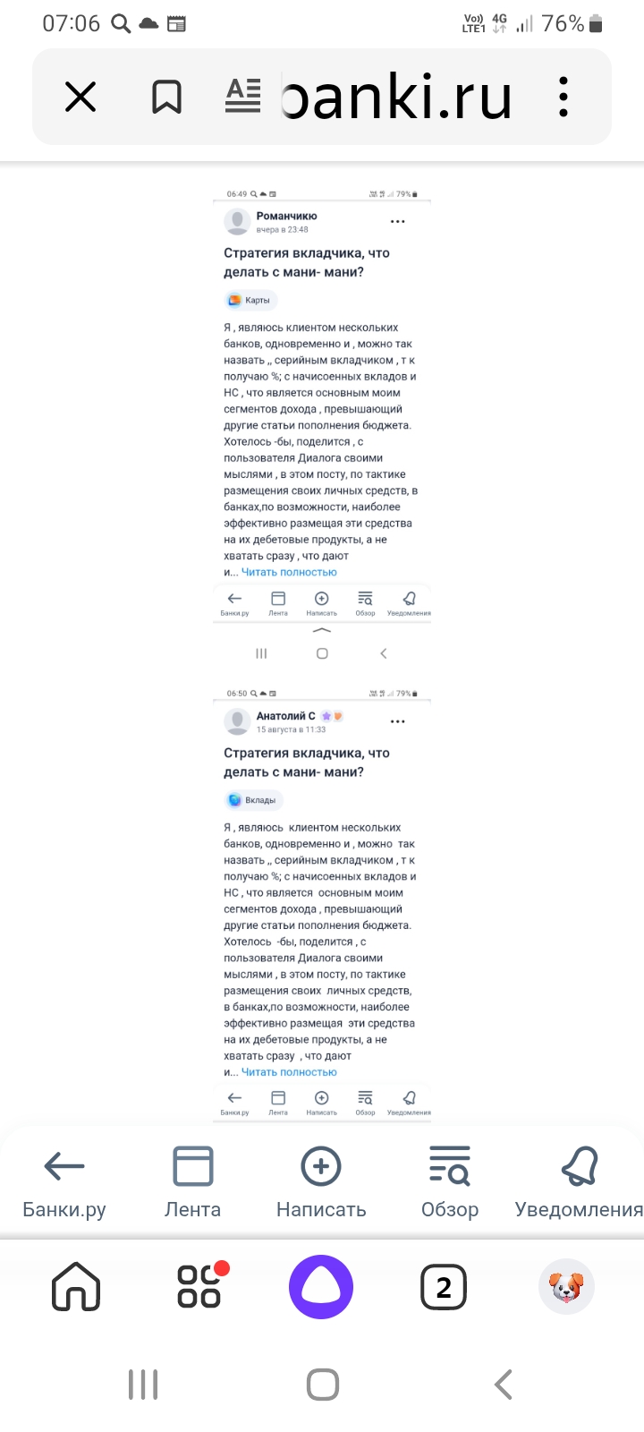 Я , являюсь клиентом нескольких банков, одновременно и , можно так назвать ,, серийным вкладчиком , т к получаю %; с начисоенных вкладов и НС , что является основным моим сегментов дохода , превышающий другие статьи пополнения бюджета. Хотелось -бы, поделится , с пользователя Диалога своими мыслями , в этом посту, по тактике размещения своих личных средств, в банках,по возможности, наиболее эффективно размещая эти средства на их дебетовые продукты, а не хватать сразу , что дают и рекламируют , но и успевать брать , пока не изменились условия тарифа , в более худшую сторону. Что для этого нужно. Во - первых , ожидая , когда вскоре, появятся свободные средства, у вас , надо постоянно , мониторить ситуацию на фин.рыке , отслеживая тенденции по падению ставок или их повышению , по нескольким банкам, конечно в разумных пределах , не обременяя себя этим уж слишком . Во - вторых, необходимо, изучить сам продукт , вклад, или НС , предварительно , по условиям тарифа , чтобы знать нюансы, избежать проблем с открытием , размещением средств , а так-же изучить алгоритм пополнения средств , в данном банке , знать лимиты , чтобы избежать комиссии, а так -же предусмотреть вариант вывода средств , после окончания срока действия вклада или НС. В некоторых банках , имеет значение , как , от кого и каким способом было поступление средств на счёт. В - третьих , т.к по фин. рынку , складывается такая ситуация , что по дебетовым продуктам банка в статусе ,, новый клиент ,, или ,, новые деньги ,, % выше ,необходимо обязательно отслеживать ситуацию по сроку , чтобы иметь возможность получить этот статус и открыть продукты , именно , в этом статусе. В - четвёртых , стремится иметь сразу несколько вкладов и НС , в разных банках , а не класть деньги в одну корзину. Кроме того , необходимо , самому отслеживать изменения ситуацию по возможным изменениям КС ЦБ , в том числе и по датам очередных заседаний ЦБ РФ по КС. Вот и все . Всем пользователям Диалога СПАСИБО и желаю 💰.