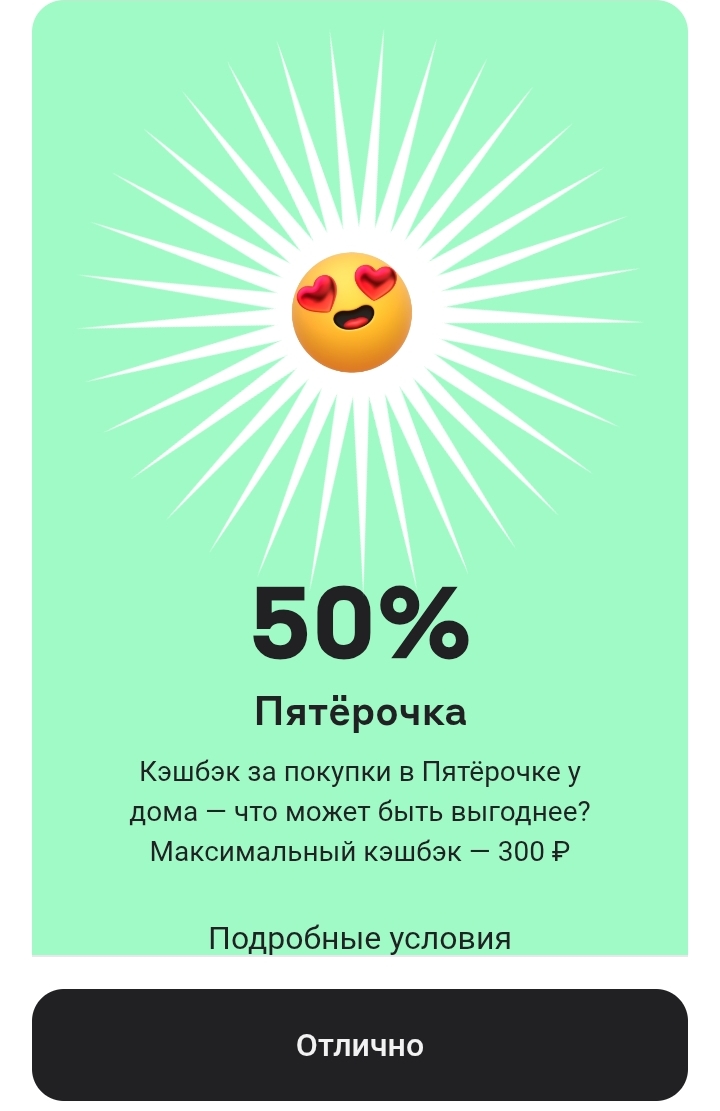 Каждый понедельник Альфа-банк предлагает покрутить барабан суперкэшбэка и принять участие в самых разнообразных акциях. Сегодня в приложении банка появилась информация о возможности получить кэшбэк до 100% за покупки в магазине "Пятерочка".