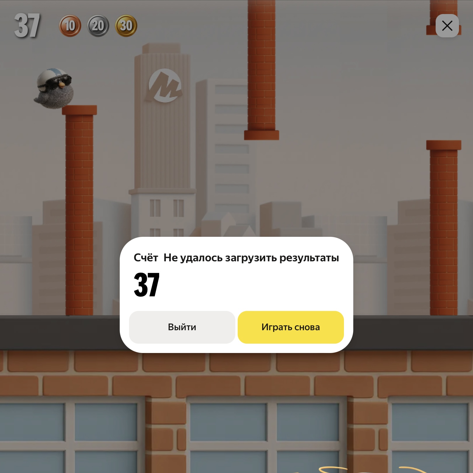 Но сегодня я заметил там новую игру про голубя Гошана. Это скопированная с Flappy Bird тапалка (от слова тапать, т.е. нажимать на экран), где вы должны помочь жирному голубю с плохим пространственным восприятием облетать кирпичные трубы. Звучит просто, но для меня это стало невыполнимой задачей. Спустя бессчётное количество тщетных попыток преодолеть требуемые 30 препятствий (лучший результат на скриншоте) у меня появилось желание выкинуть в окно свой планшет вместе с голубем Гошаном. Не уверен, что промокоды на отбеливатели и лампочки стоят таких нервов.