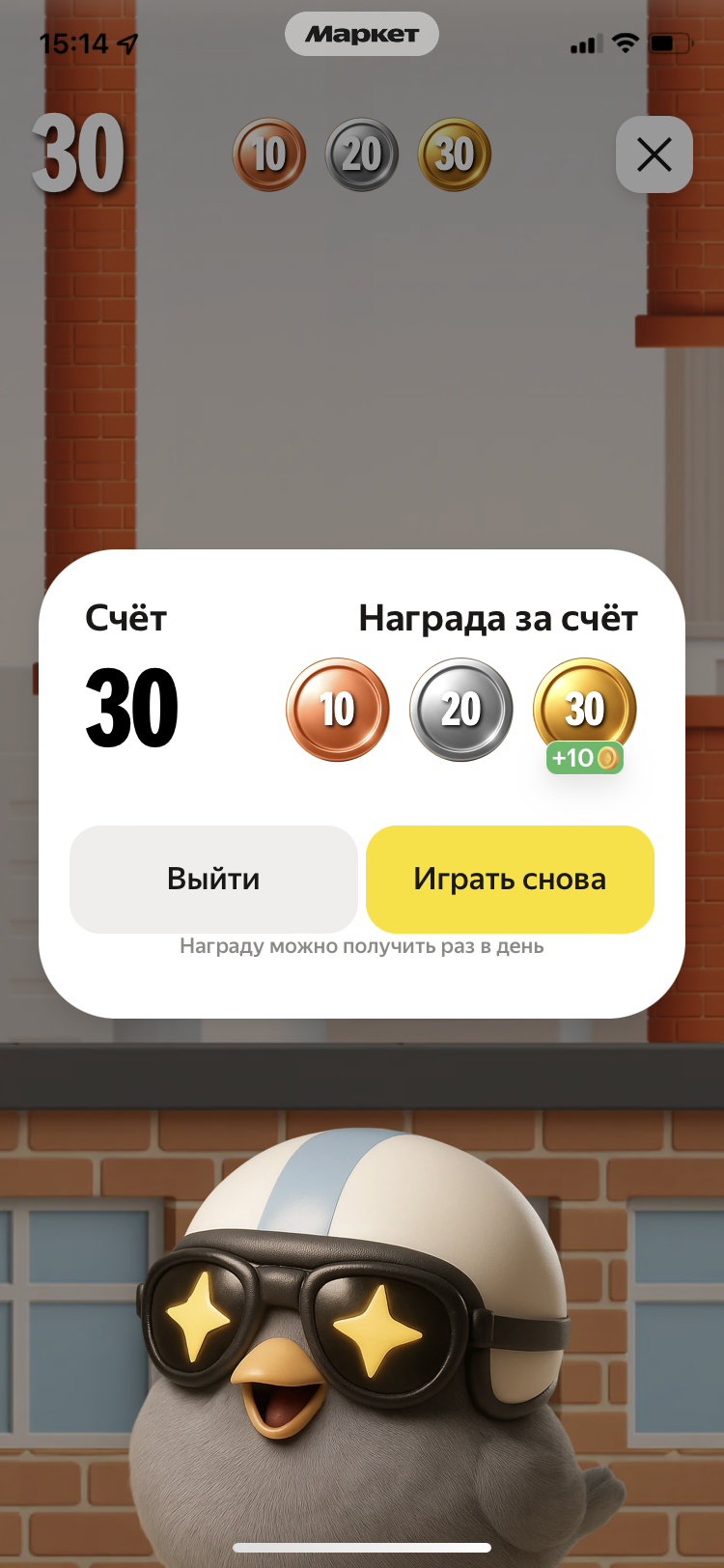 Чтобы крутить колесо нужны монетки, которые дают за посещение или за покупки, но также их можно заработать в мини играх. До сегодняшнего дня такая игра была одна и совсем не сложная, требовалось проехать минимум 3 км на фирменном грузовике Яндекс.Маркета, объезжая другие автомобили на трассе.