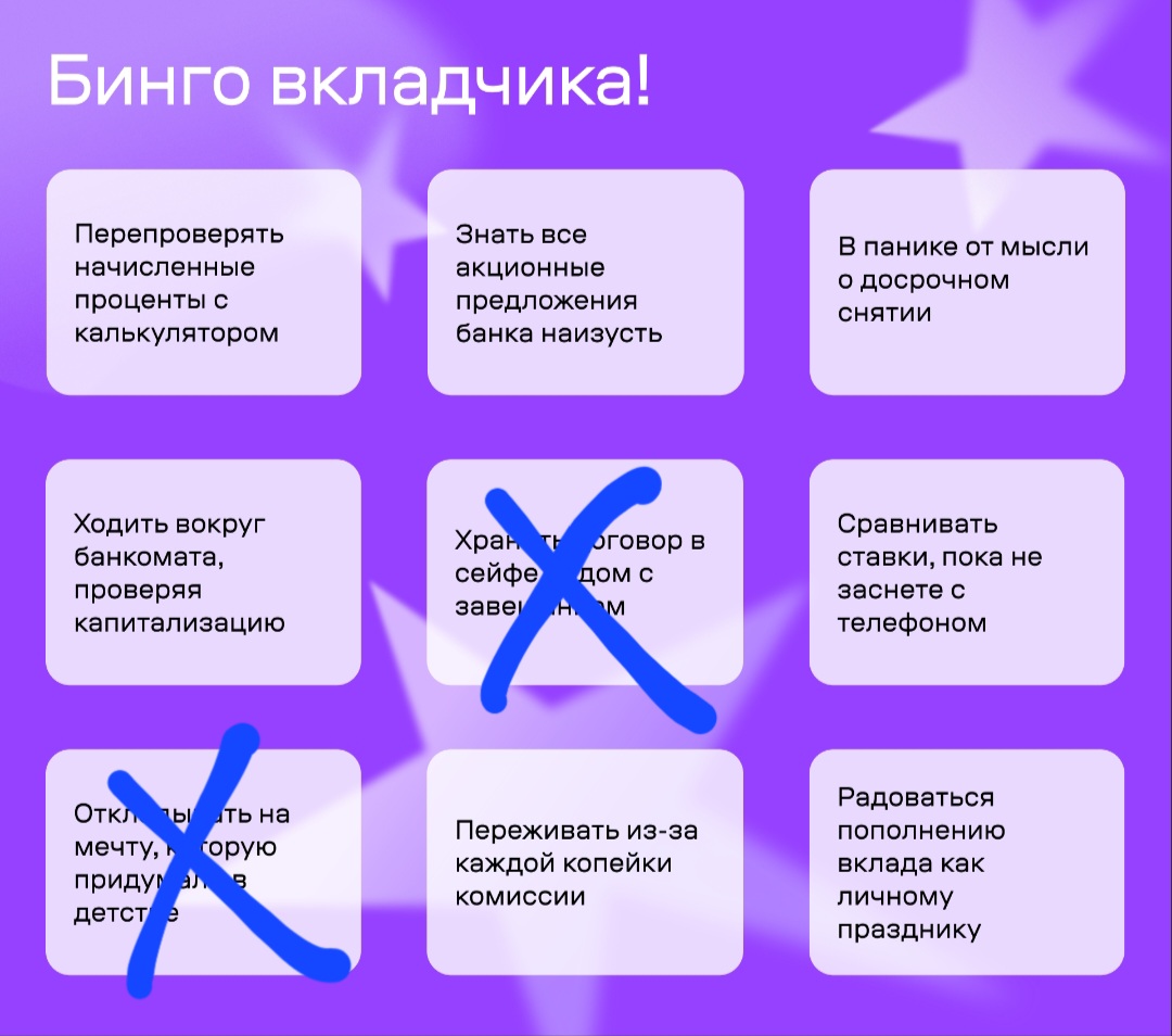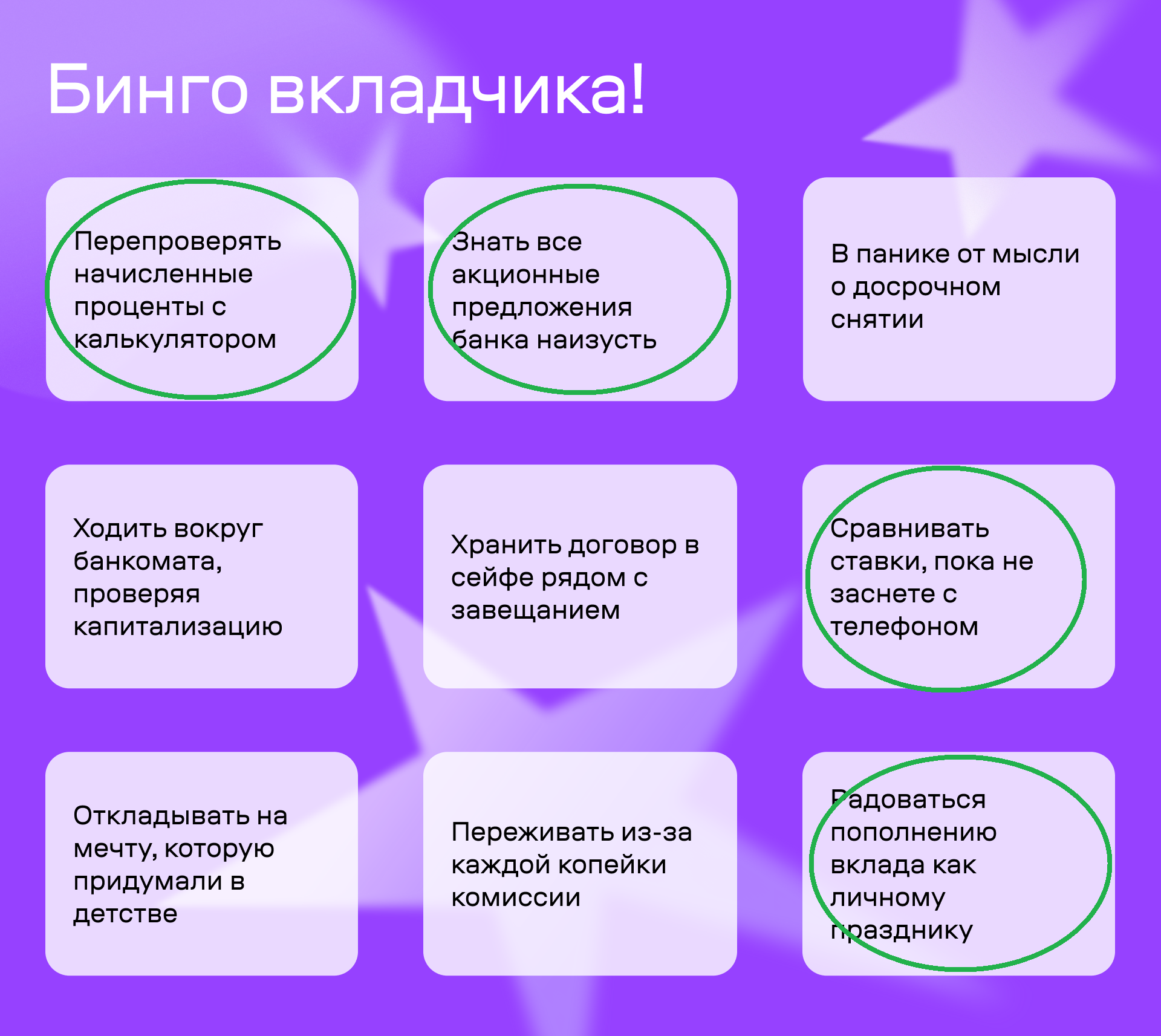 Проверьте, насколько вы типичный вкладчик: отмечайте клетки, которые совпадают с вашей реальностью. Самые типичные вкладчики получат призы!