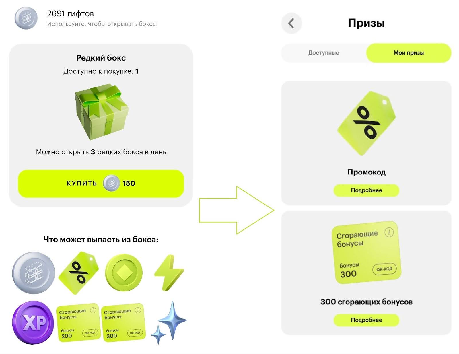 Шаг пятый: игра не для развлечения. Тамагочи в Золотом Яблоке - это не просто игрушка! В ходе выполнения ежедневных и и еженедельных заданий можно копить бьюти-коины и гифты и уже на них покупать в виртуальном магазине обычные и редкие брксы. И если обычные боксы дают всякие ачивки в игре, то в редких боксах могут выпасть сгораемые бонусы, в моём случае удача подарила мне дважды по 300 бонусов, итог минус 600 рублей от чека.