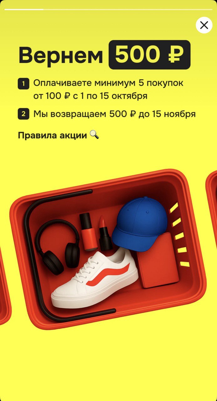 Сегодня получила уведомление от ОТП банка с приглашением поучаствовать в акции. Банк предлагает оплатить минимум 5 покупок от 100 руб. каждая в период с 01.10.2025 по 15.10.2025 г. При выполнении условий банк обещает вернуть 500 руб. до 15 ноября 2025 г.