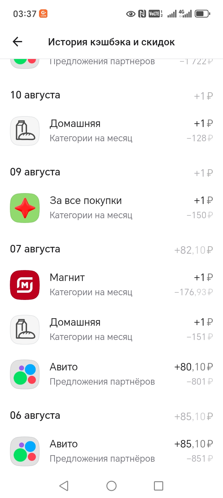 Вот моя история кэшбэка из Альфа-банка за прошлый период акции.