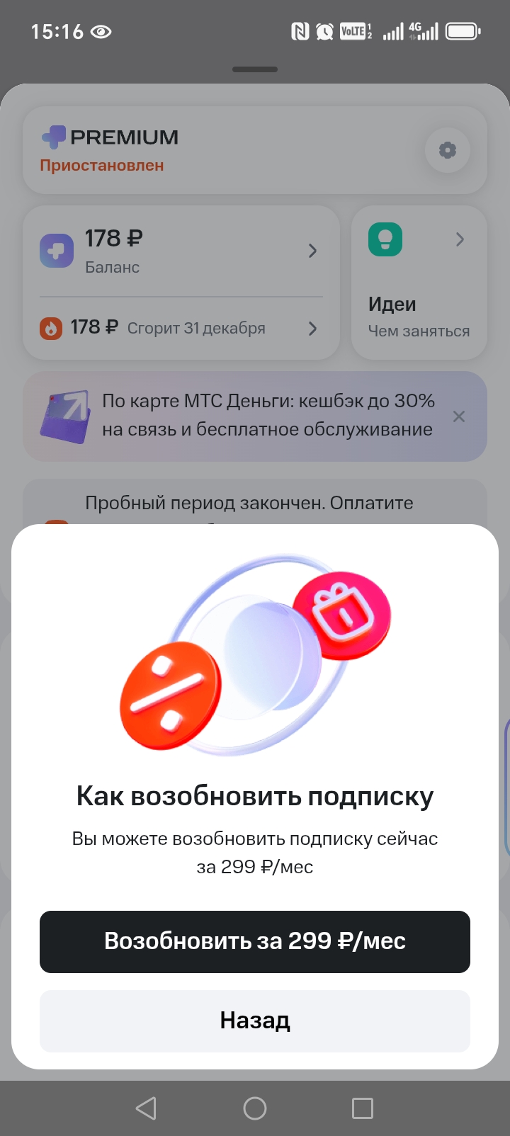 Автор , сколько стоит оплата статуса ,, Премиум,, , при невыполнение условий бесплатности. Что- то сомневаюсь, что 299₽ , а не на порядок больше. По условиям тарифа премиальный обслуживания в банке МТС, при невыполнение условий трат и поддержания баланса стоимость - 2990₽., т.е в 10раз больше. Возможно , что вы не разобрались ещё полностью с этой платной услугой. Возможно , вы имеете карту