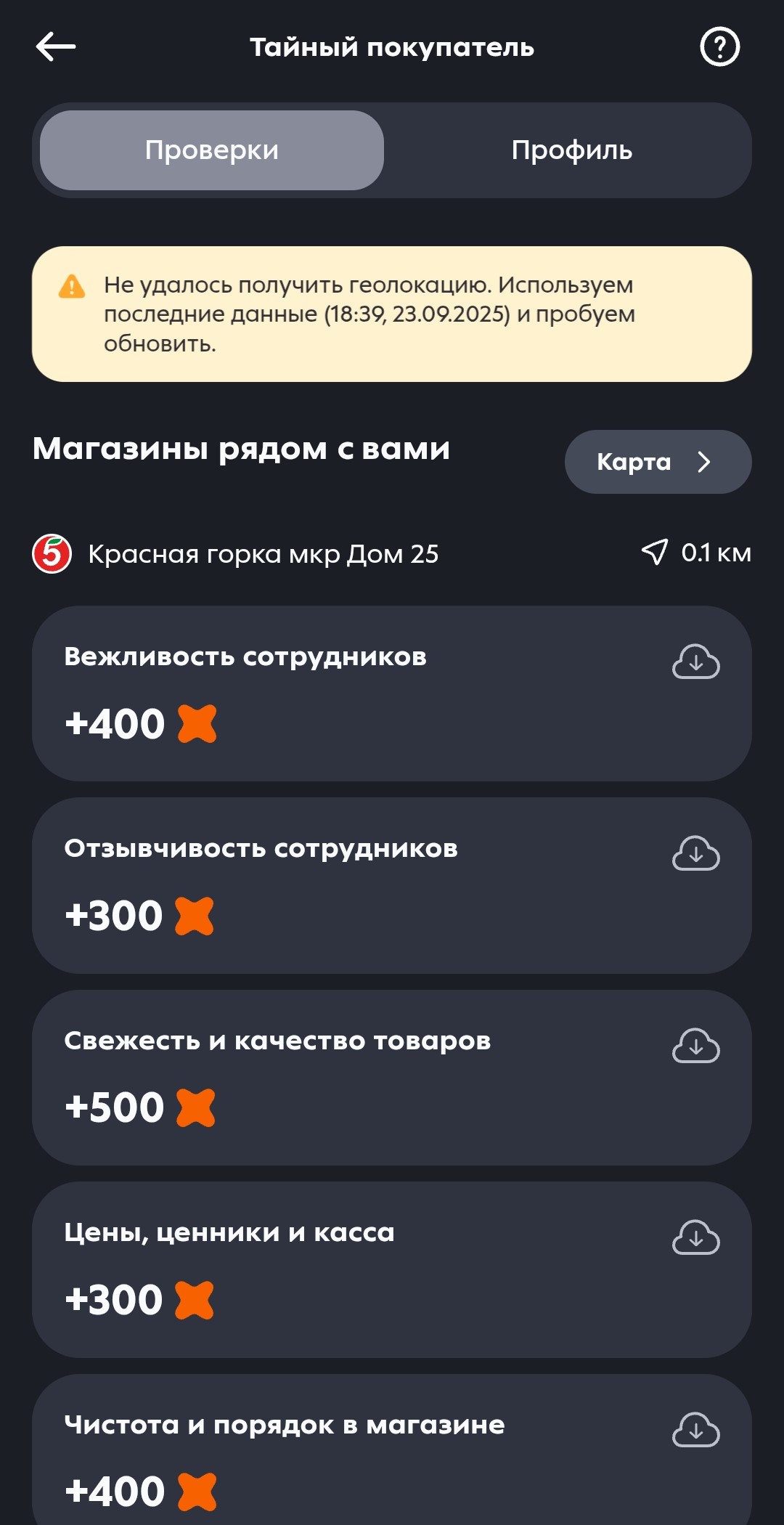 Перейдя в данный раздел вам открывается список доступных магазинов и проверок. За каждую проверку можно получить апельсиновое вознаграждение. В целом, задания не очень сложные. При открытии проверки можно предварительно ознакомиться с тем, что предстоит выполнить и только после этого взять задание в работу. После модерации вашей проверки на счет начисляют апельсинки.