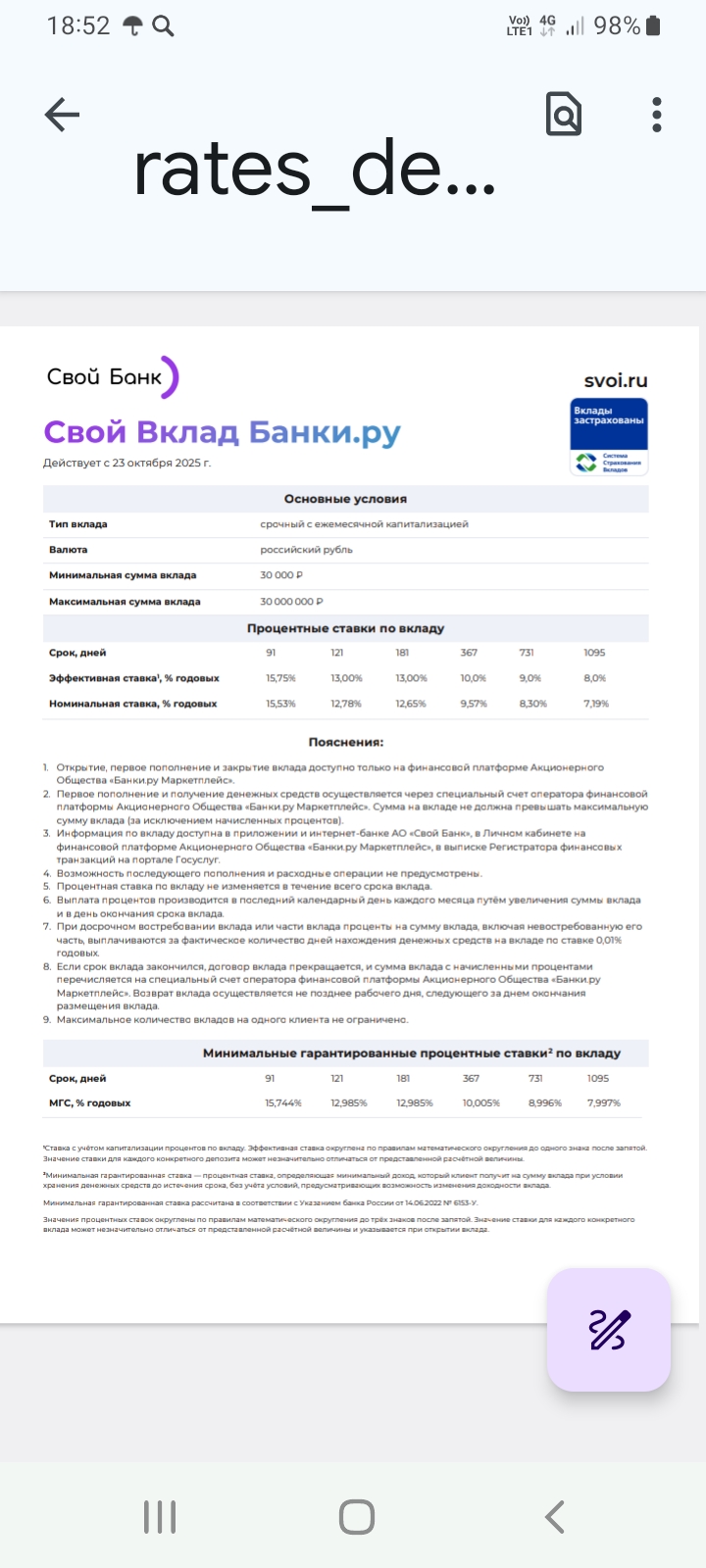 Добрый день, друзья!!! Выбирая для себя очередной вклад, решила поделиться информацией с вами, возможно, кому - то пригодится мой обзор.