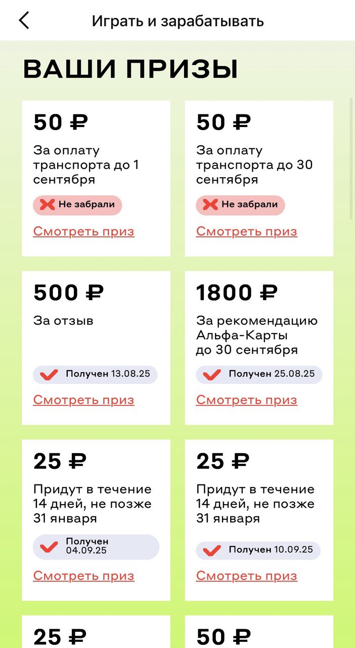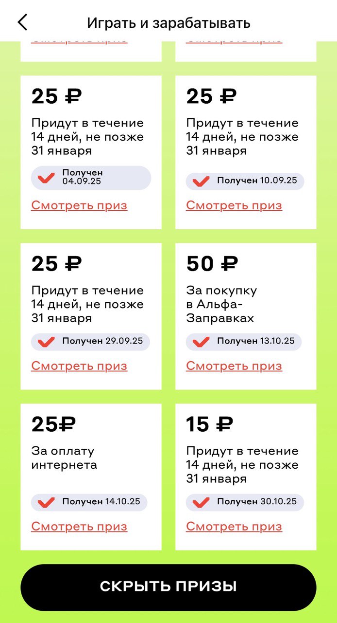 Думаю, что многие клиенты Альфа банк знают об их играх и регулярно в них играют. Вот я сегодня в очередной раз поиграла в 100 секунд, добрала 500 самоцветов и обменяла их на приз. Выпало 15 руб., которые моментально поступили на счет.