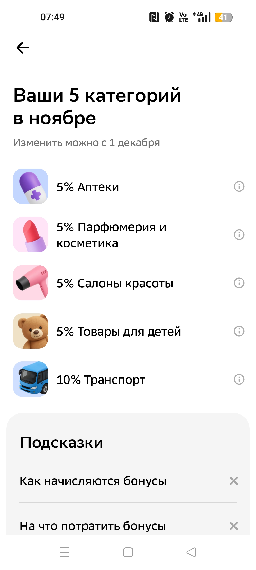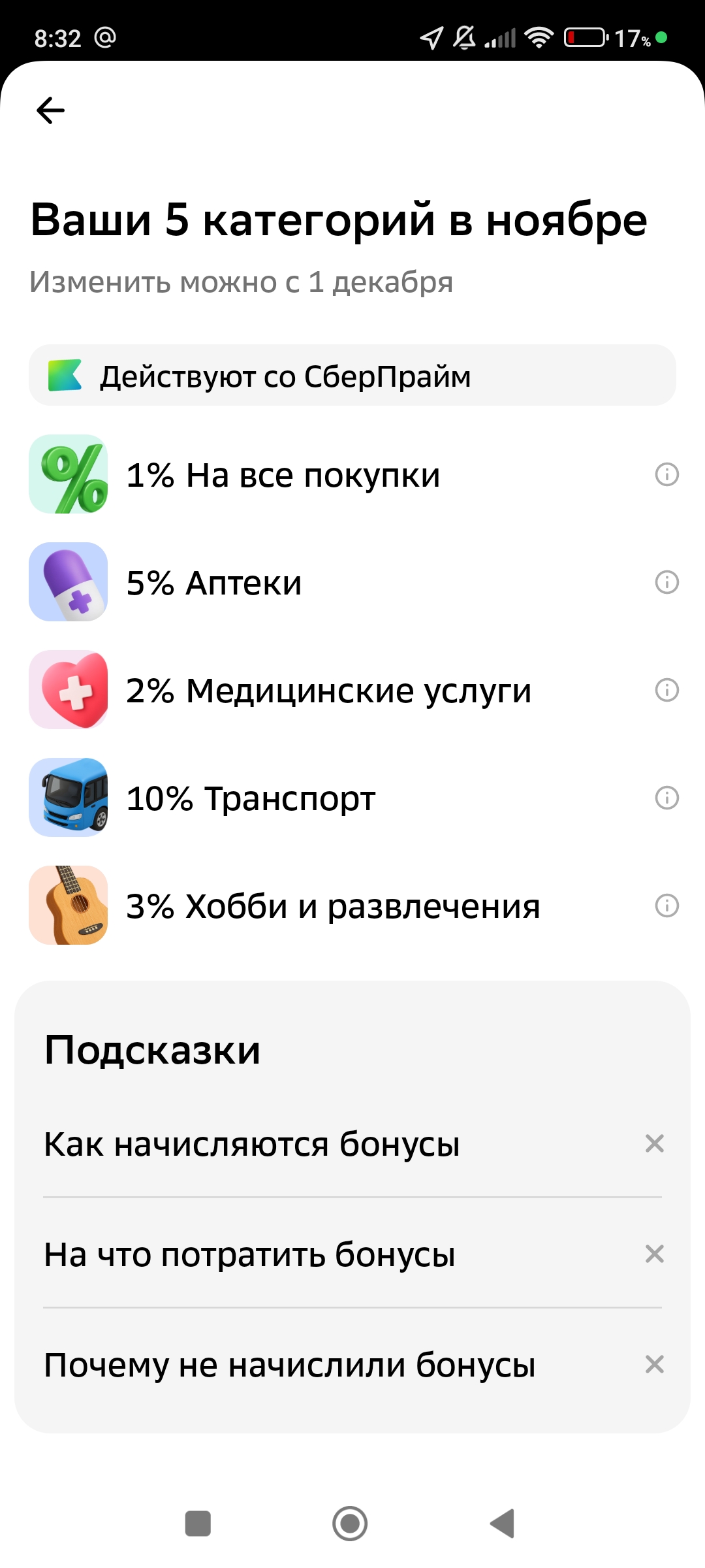 Виктор 80, у меня тоже пару раз было. Как-то совсем плохо в Сбербанке с категориями. Только категория "транспорт" (10%) меня устраивает - каждый день езжу на электричке))