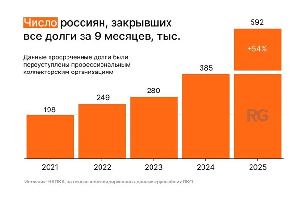 В НАПКА сообщили, что должников по кредитам стало значительно меньше. Всего за 9 месяцев 2025 года в досудебном порядке заемщики погасили долгов на более чем 39 млрд. Насколько я поняла, речь идет о тех задолженностях по кредитам и займам, которые были переуступлены коллекторам. Всего полностью с просроченными долгами рассчитались 592 тыс. россиян.