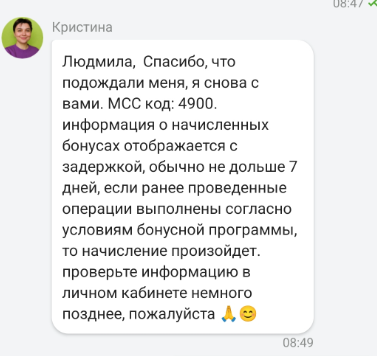 В итоге поддержка проявила лояльность и начислила 1000 рублей за первую покупку в определённой категории. Но осадочек-то остался!