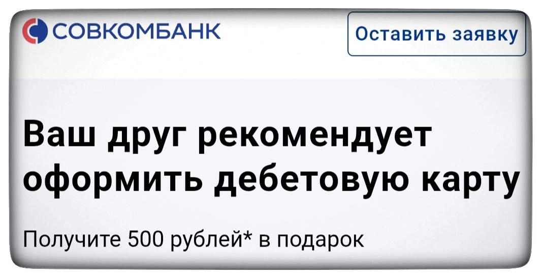 Не забывайте, что за оформление карты вы можете получить в подарок от 500 руб. Сейчас на Банки.ру, также действует акция за зачтенный отзыв о Совкомбанк в Народном рейтинге банков. Совкомбанк начислил сегодня 500 руб. Уточняйте.