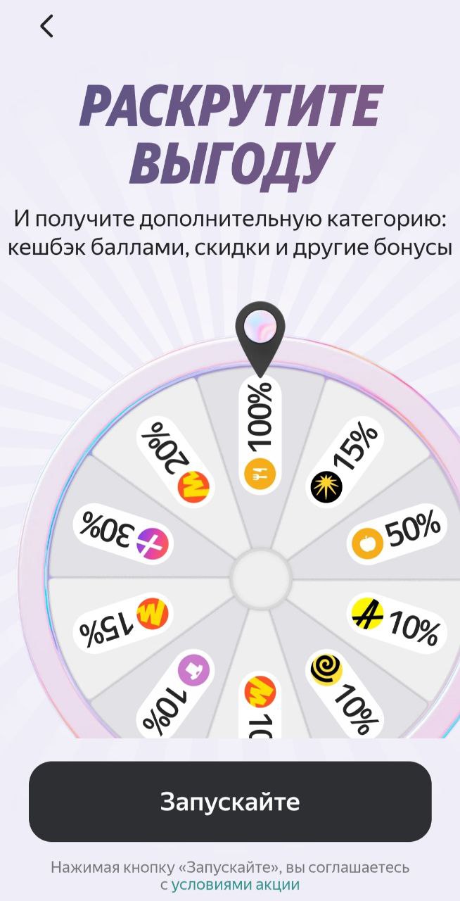 Но вот использовать карту Яндекса боялась. Не очень доверяю виртуальным банкам. И всё таки созрела, вначале сентября открыла карту, стала пользоваться Яндекс Пэй. Мне понравились категории, понимаю что для завлечения клиентов банк предлагает вначале лучшие условия. У меня тоже сначала 7% супермаркеты, 10% аптеки , плюс вращать каждые 10 дней колесо, выпало два раза по 50% супермаркеты и они суммировались с 7% .