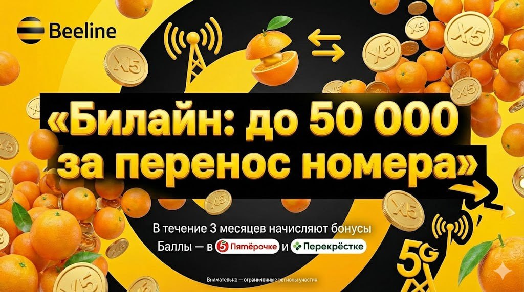 Билайн запустил новую акцию для привлечения новых клиентов путём переноса номеров других операторов. За перенос своего телефонного номера в Билайн клиенты получают бонусные баллы программы лояльности «Х5 Клуб», которыми можно расплачиваться в магазинах сети «Пятёрочка» и «Перекрёсток».