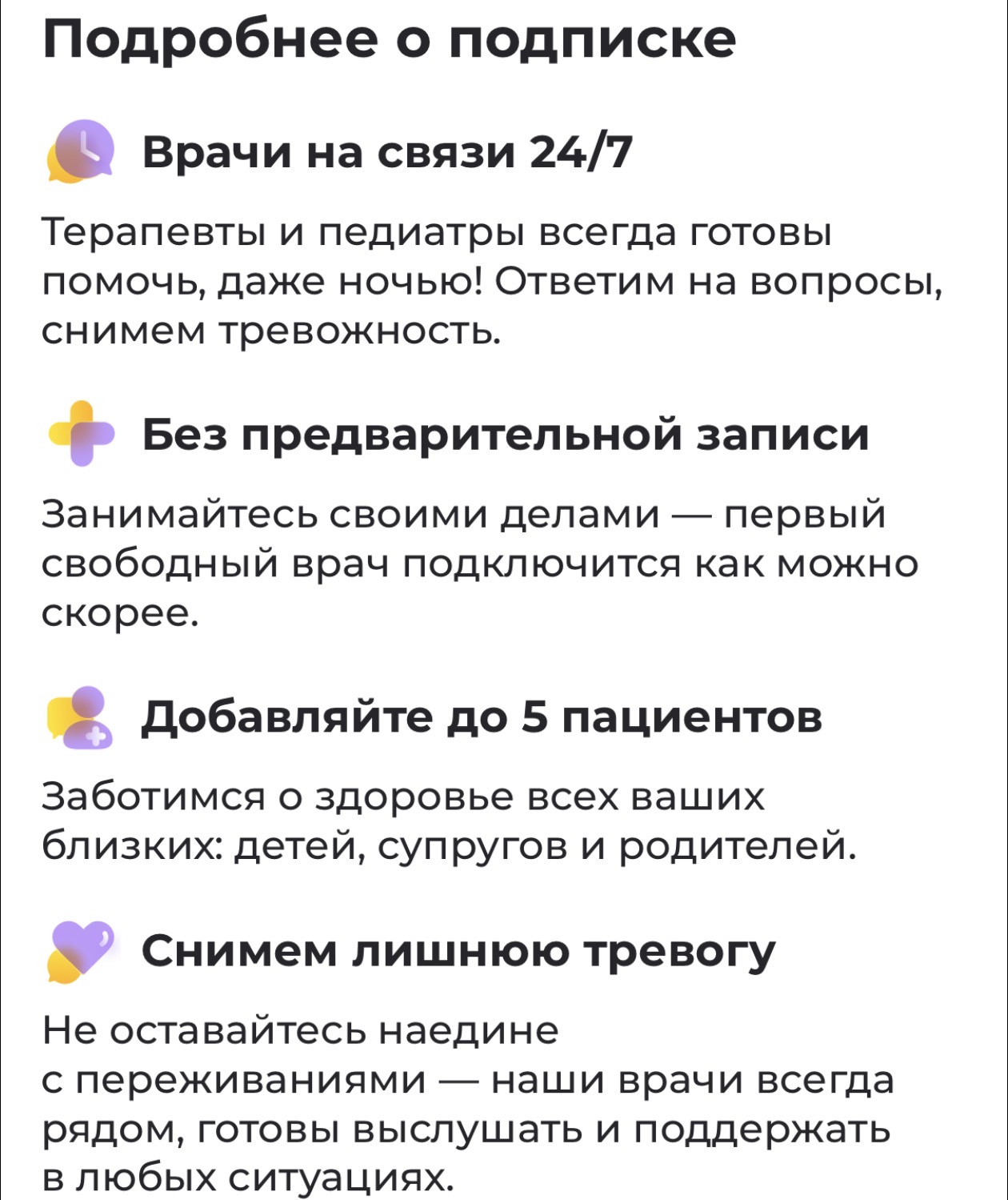 Так же есть услуга связи с врачами онлайн, ❗️но при покупке подписки.