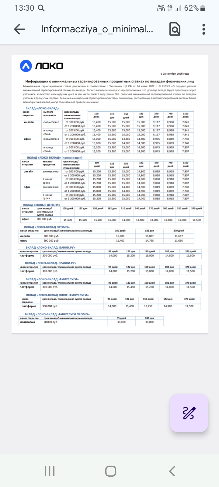 Процентная ставка 18% годовых (вместо 17%) действует 2