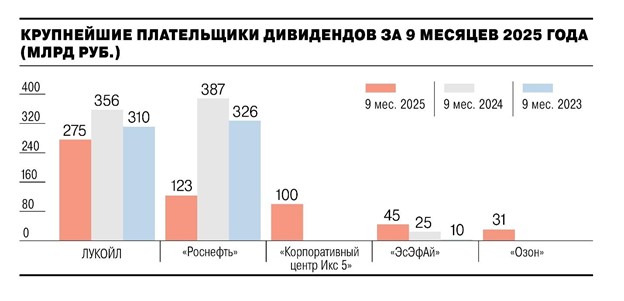 Не очень радостные новости для тех, кто держал акции "дивидендных аристократов" в надежде на то, что они все же выплатят приличные деньги по итогам года. Аналитики и СМИ подсчитали, что за 8 месяцев 2025 года объем выплат составил только 640 млрд руб. Это практически вдвое меньше, чем за аналогичный период прошлого года.