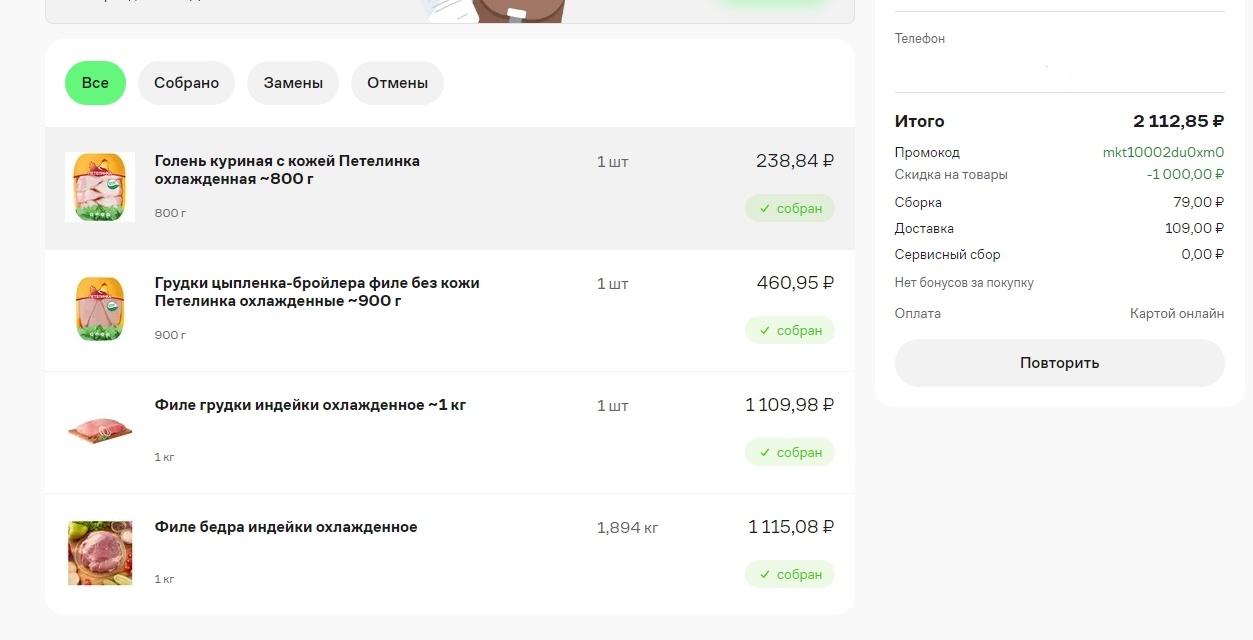 Одними шоколадками семью сытой не сделаешь, поэтому раз в месяц я оформляю отдельный заказ на доставку мяса — только базовые продукты и никакого «баловства». Перед покупкой я обязательно сравниваю цены в разных магазинах, оцениваю ассортимент и выбираю тот вариант, где условия наиболее выгодные. Дополнительно стараюсь использовать промокоды — это даёт приятную дополнительную экономию. Обычно в мою мясную закупку входят филе и бёдра индейки, свиной окорок на кости, а также целая курица или её части — в зависимости от того, что в данный момент выходит дешевле.