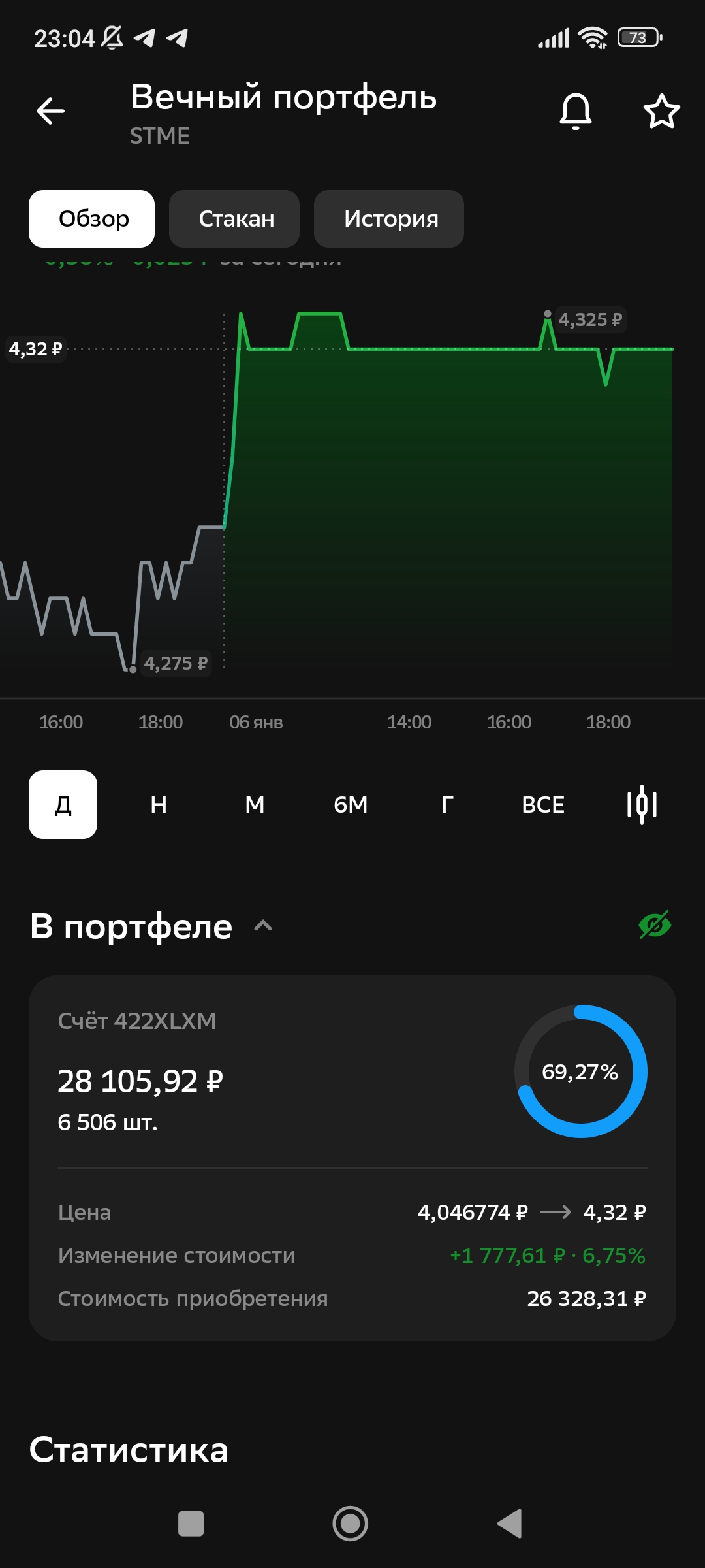 Не все инвестиции — это про спринт. Часто это про спокойную, дисциплинированную дистанцию.Прямо сейчас в моём портфеле есть позиция, которая наглядно это показывает — ETF «Вечный портфель» (STME).📊 Сухие цифры: