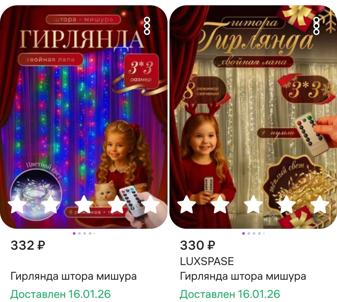 Перед Новым годом такие гирлянды-шторы и наборы шаров стоили от 500 руб.
