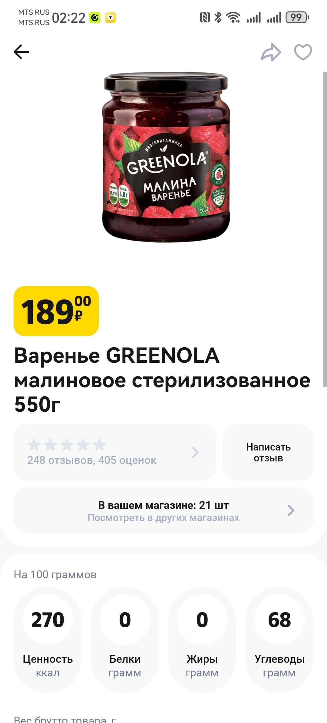 Прошу не глядеть с разочарованием на цену. Сама помню, как покупала такое варенье по 129 ₽ без всяких купонов. Что поделать...