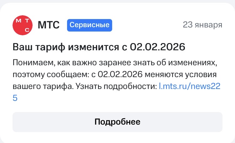 На днях приходит уведомление от МТС ,что меняются условия тарифного плана ,у меня старый тариф ,очень удобный для меня!