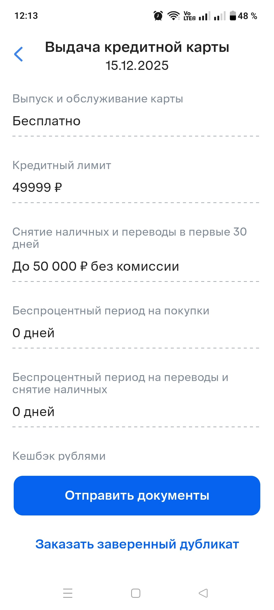 Получил виртуальную кредитную карту от ВТБ 15.12.2025 .