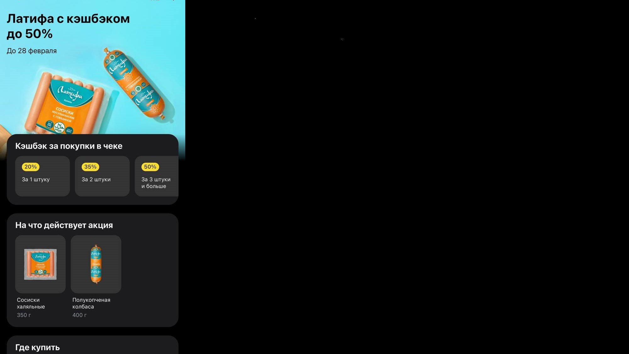 В мобильном приложении есть интересный раздел "Товары с кэшбэком". Периодически просматривая его можно обнаружить хорошие кэшбэки: 10%, 20%, 25%, 30%, 50%, а то и того больше.