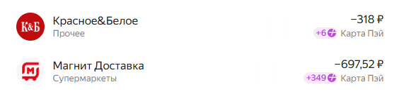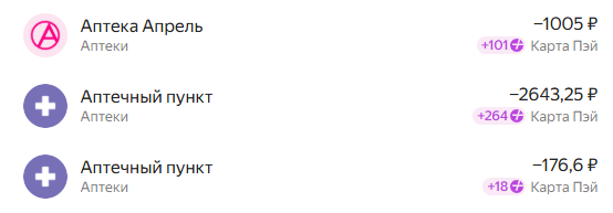 Там конечно бывают ограничения на отдельные категории, например в одном из разделов не больше 500 или 1000 баллов дополнительного кеша. Но всё равно очень выгодно. Здесь я показала сколько кешбэка я получала в кафе и в аптеках.