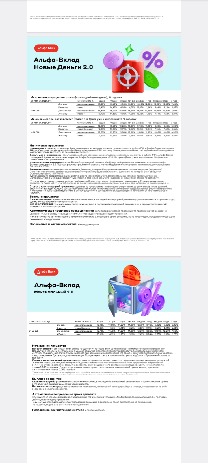 Альфа-Банк ввёл в линейку своих депозитных продуктов вклад ,, Новые деньги 2.0 ,, ,, Максимальный 2.0,,