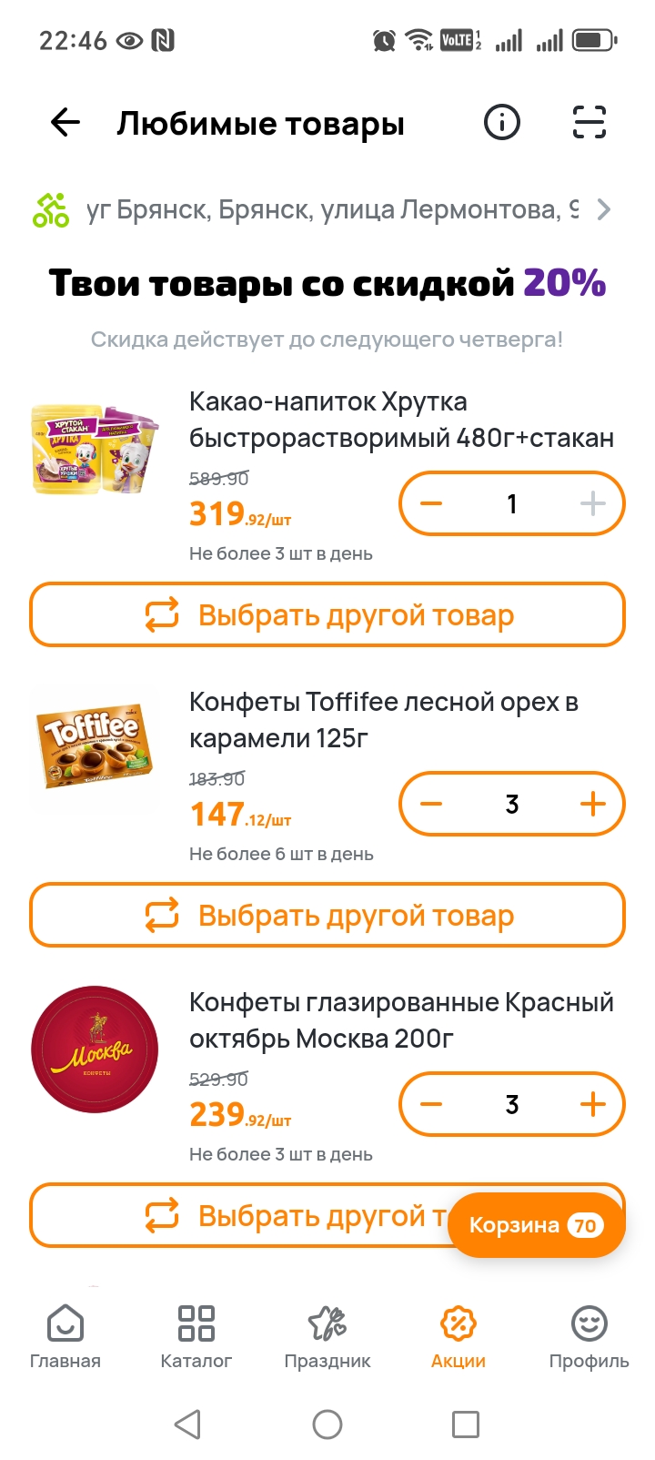 А теперь о Дикси доставке. Внутри выбираете три любимых продукта, только очень подробно обдумайте, так как лимит любимых продуктов в день 3 штуки или же 3 кг для весового товара, а так же смотрите по наличию. Имейте ввиду, что при выборе товара, который идет по акции сам по себе, скидка 20%любимого продукта применяться будет к его полной стоимости. Так же выбираете любимые категории для начисления монет (их можно списывать при оплате заказа), и смотрите промокоды, заранее копируя нужный. Если что промик "чек", может пригодится. И только после этих действий оплатить альфа картой, главное, чтоб сумма не менее 2000 рублей, а лучше 2500 рублей, так как возможны отмены и нехватка товара, или вариант замены по их усмотрению, чтоб не распрощаться с кэшбэком)