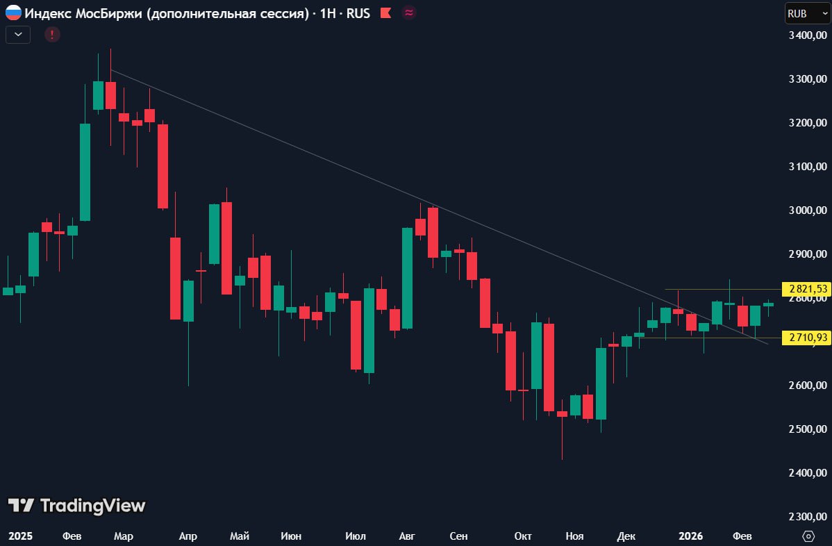 Боковик 2700-2800 продолжается, но из плюсов - все коррекции выкупаются, многие акции начинают разворачиваться вверх. Рынок тянет вниз небольшое количество аутсайдеров Лукойл и др нефтегаз.