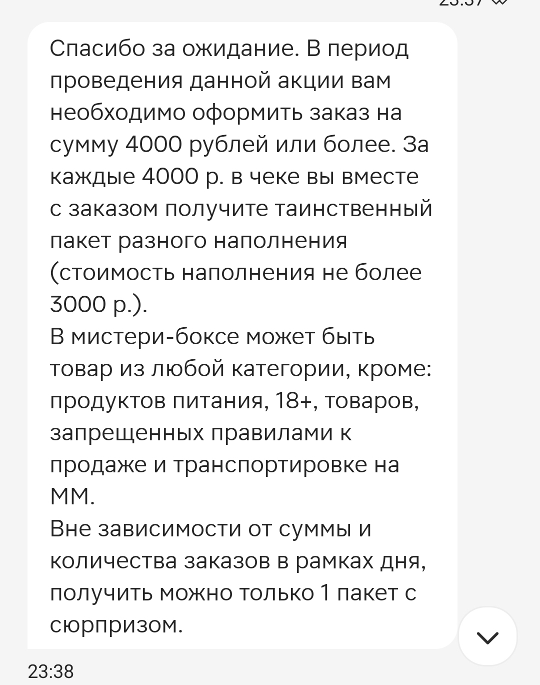 Надеюсь, в подарок дадут не рулон туалетной бумаги. Я пыталась найти более подробную информацию об акции на сайте, но увы не смогла самостоятельно. В чате поддержки разьяснили, что при заказе от 4 тысяч будет подарен приз с наполнением не более 3000 рублей. Прислали ссылку на правила акции, там указано число таких призов ограничено - всего 1752 штуки.