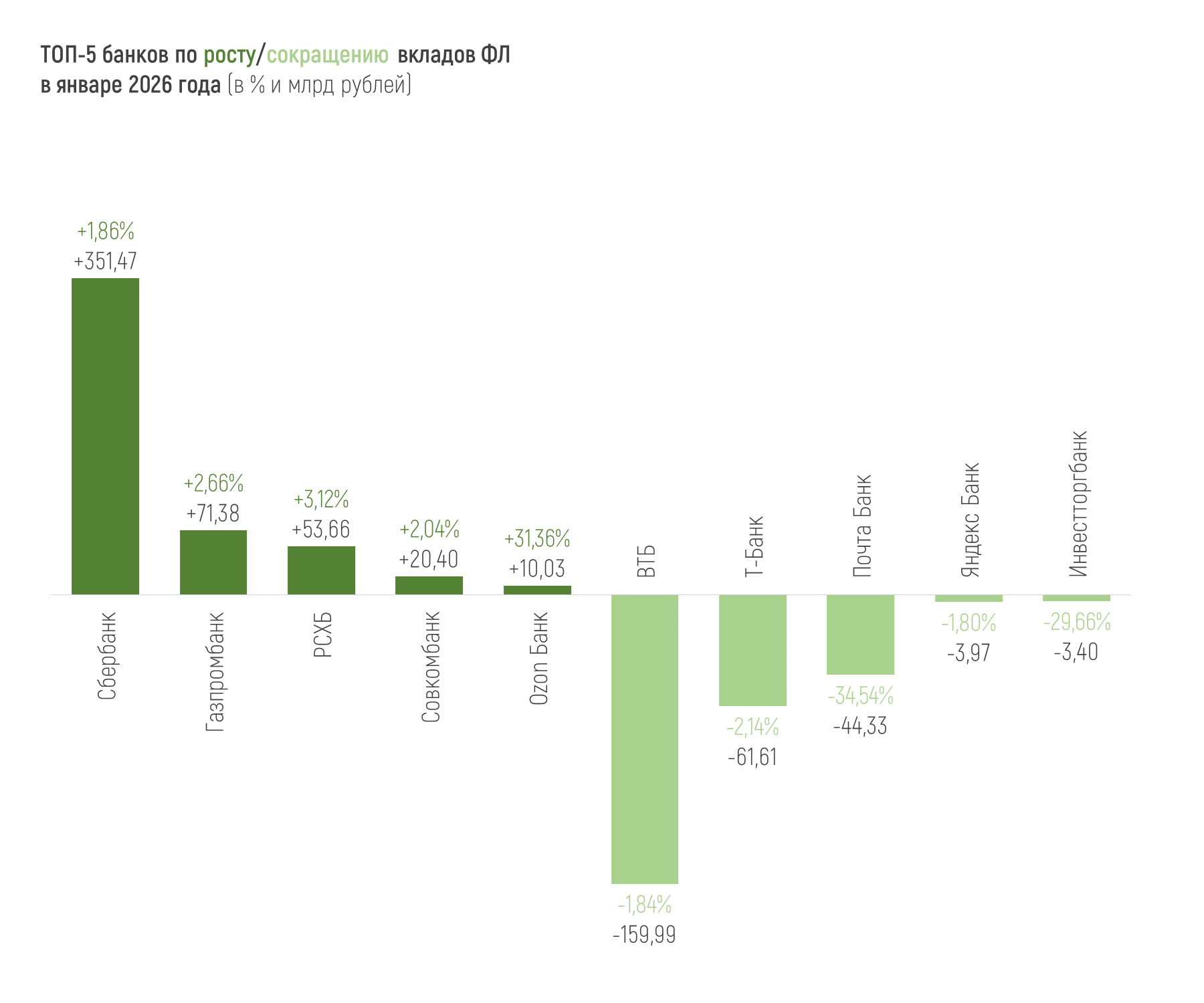 Все 20 крупнейших банков в финрейтинге Банки.ру в январе 2026 года показывают чистую прибыль, а вот Почта Банк снова начинает год с отрицательного финансового результата (2025 год этот банк завершил с убытком в 9,2 млрд рублей).