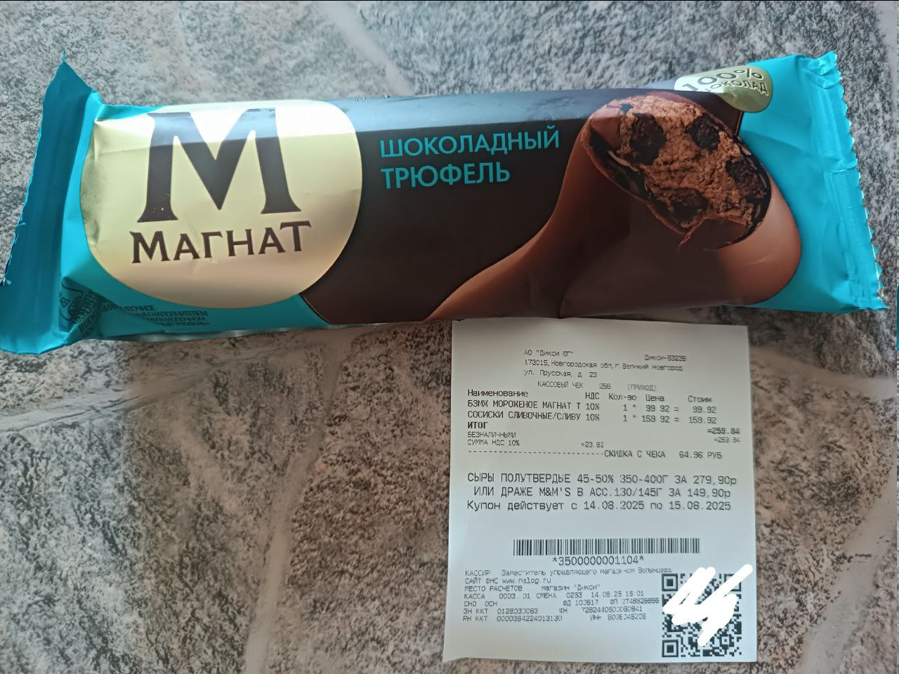 Кешбэк 100% баллами Спасибо за Магнат уже отобразился в Сбербанке, на удивление быстро, через 5 дней. Ещё бы придумать, куда потом тратить эти баллы. Купила в своём любимом Дикси со скидкой 20%, иначе бы не уложилась в лимит 100 рублей.