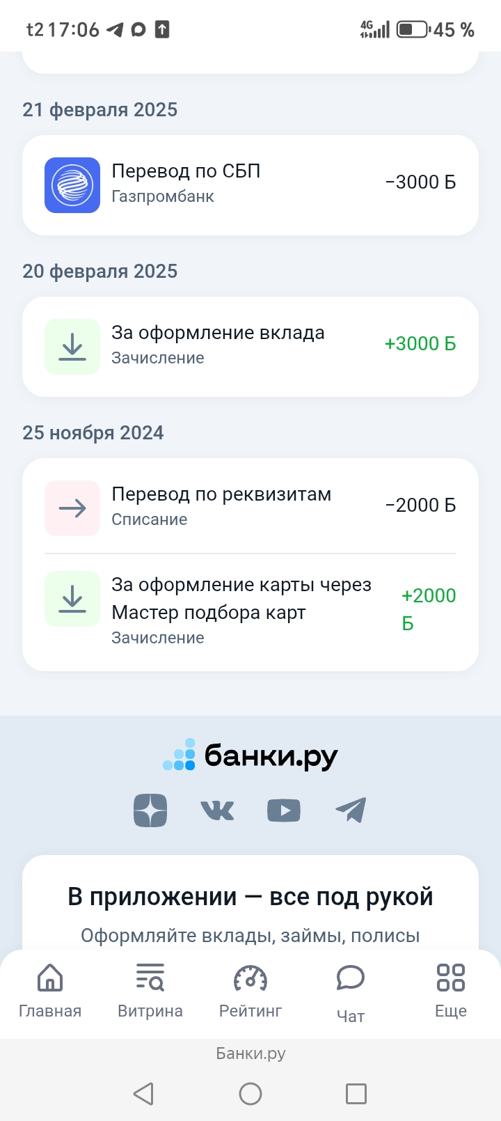 ✔️ Сразу же без проблем я смогла вывести на карту через СБП всю сумму Вклада в Газпромбанк, а также на эту же карту вывела вознаграждение за первый ВКЛАД 3000 Банкимани.