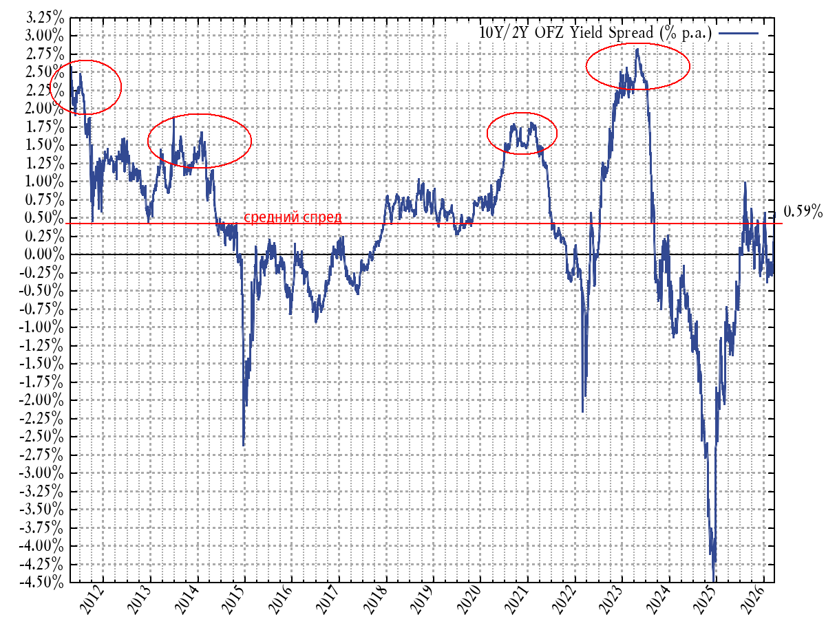 Итак, корень заблуждений — в игнорировании самой природы длинного долга. Поскольку владение облигацией на протяжении 10-15 лет связано с большой неопределенностью (никто не знает, какой будет инфляция, как изменятся ставки и т.п.), то рынок оценивает эти облигации так, чтобы они приносили своему владельцу доход выше, чем если бы он все это время размещал деньги на вкладах по ключевой ставке. Пренебрежение этой необходимой премией чревато недополучением дохода, а попытки спорить с рынком через агрессивные ставки на длинные ОФЗ — крупными убытками! Плохо, когда на этом попадаются дилетанты, и совсем печально, когда об этом забывают профессионалы!