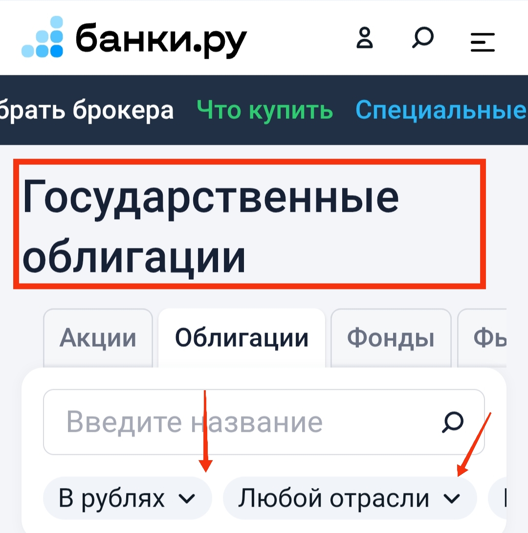 На Банках.ру есть возможность выбора не только ОФЗ и ПИФов, но и других ценных бумаг: фьючерсов, акций. Есть рекомендации, какие ценные бумаги приобрести в данный момент. Информация обновляется, актуальна на данный момент времени. Ознакомиться можно здесь. В данном разделе есть возможность поиска бумаг по доходности, размеру комиссии. Среди облигаций можно найти не только государственные, но и корпоративные, муниципальные. Среди акций есть как выбор лидеров роста, так и лидеров падения. Не нужно слушать блогеров, можно воспользоваться доступным инструментом и выбрать дивидендные акции, проследить уровень роста/падения за день, месяц, год.