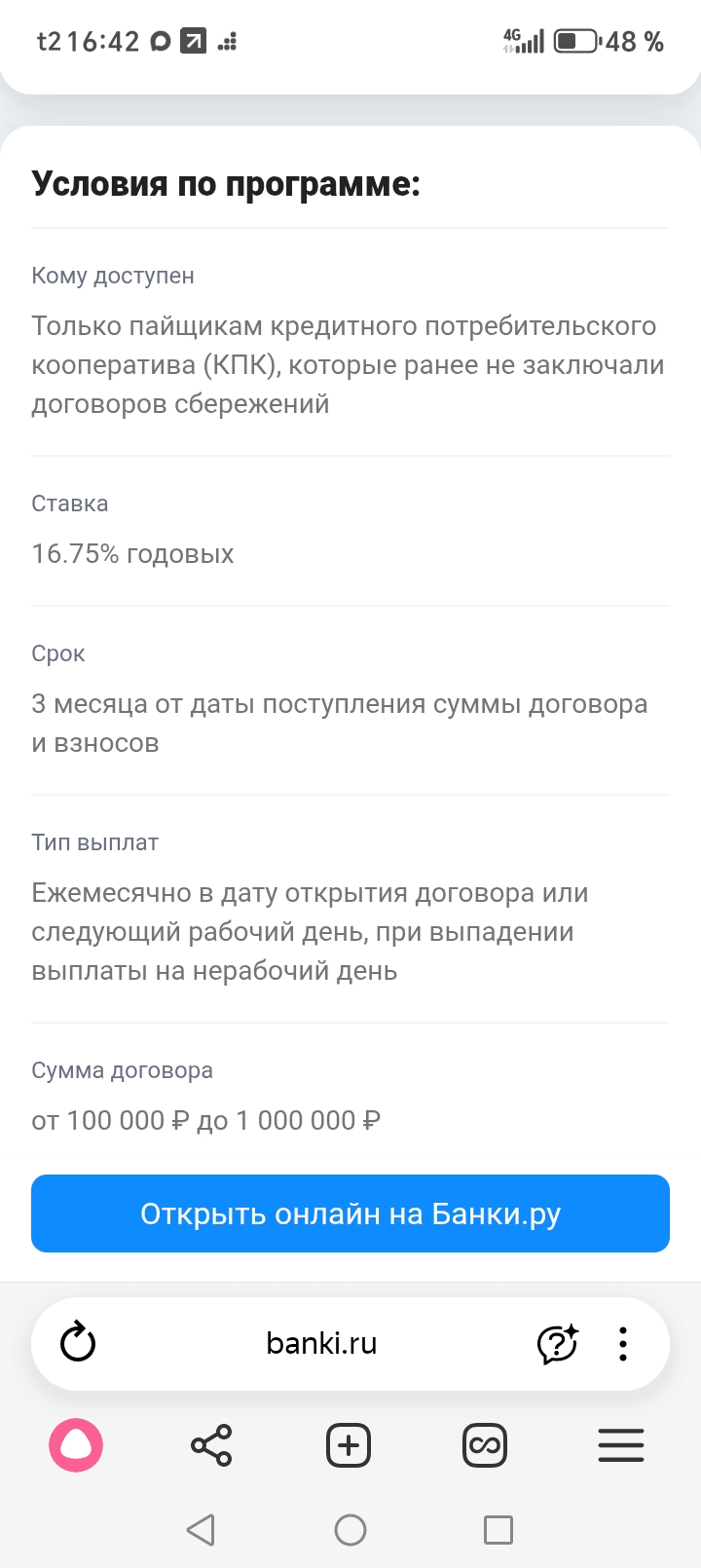 Если у вас есть свободные средства, то это весьма выгодное инвестирование, с хорошей доходностью, прозрачными условиями, а, главное - это предложение опубликовано на платформе надёжного, проверенного и прогрессивного Маркетплейса Банки. Ру 🌠