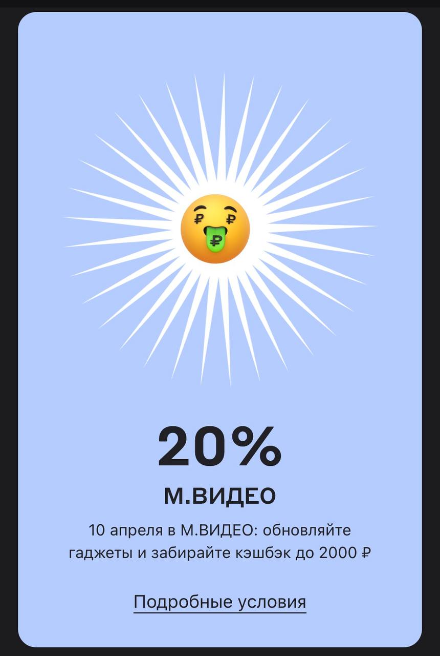 Апрель в Альфа-Банке начался с крутого бонуса — мне 20%, а моей девушке в «барабане» суперкэшбэка выпало 30% на М.Видео. Мы как раз планировали покупку кондиционера к лету, и этот купон стал отличным сигналом к действию. Свою карту я оформлял через каталог дебетовых карт Альфа-Банка на Банки.ру, и такие моменты подтверждают: если грамотно пользоваться инструментами банка, можно забирать технику на очень выгодных условиях. В 2026 году важно не просто смотреть на процент кэшбэка, а уметь вписать его в общую математику покупки.