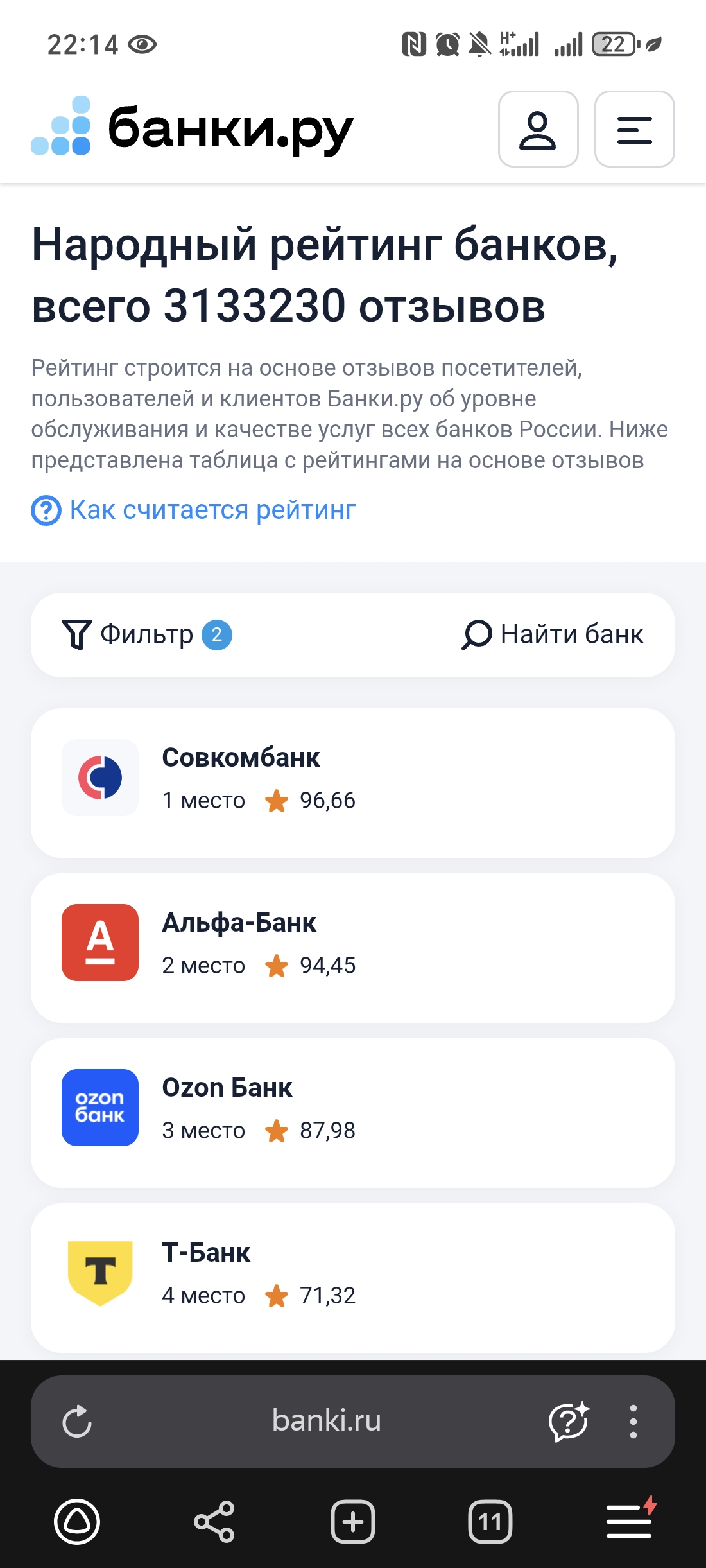 2)Фильтруйте по нужному продукту. Оценка по кредитным картам не всегда коррелирует с качеством вкладов.