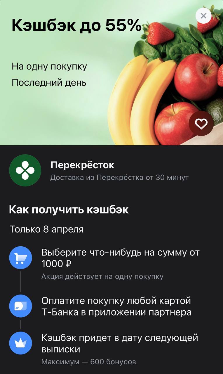 Полтора года назад я стала клиентом Т-Банка - в ноябре 2024 года получила дебетовую карту, а летом 2025 года - кредитную карту. Активно пользуюсь картами и получаю выгоду от взаимодействия с Т-Банком. Например вчера 07.04.2026 года получила уведомление о спецпредложении Т-Банка - 20% кэшбэка за покупку в магазине "Магнит". Я заинтересовалась этой акцией. Чтобы уточнить некоторые моменты, обратилась в чат личного кабинета. В ходе диалога с сотрудником выяснила следующее: