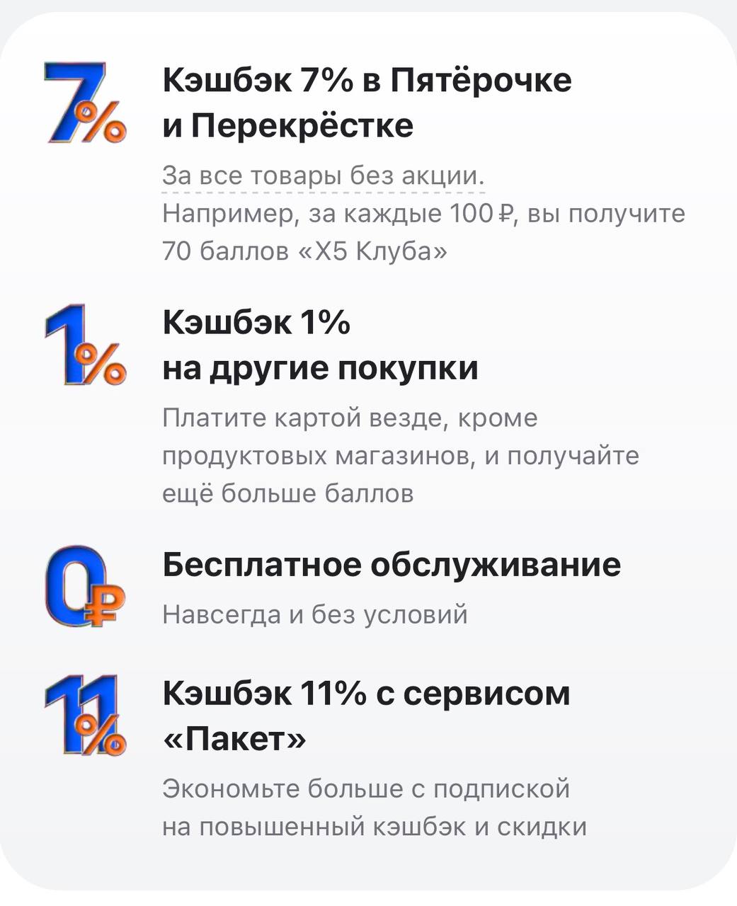 • Карта 2 — максимальный кэшбэк на ваши основные траты.