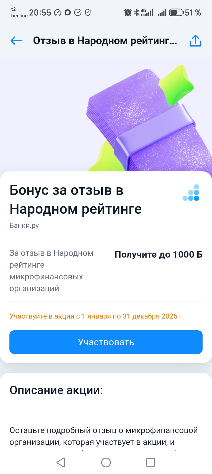 Банки. Ру предлагает за каждый отзыв, написанный МФО вознаграждение до 1000 Банкимани.