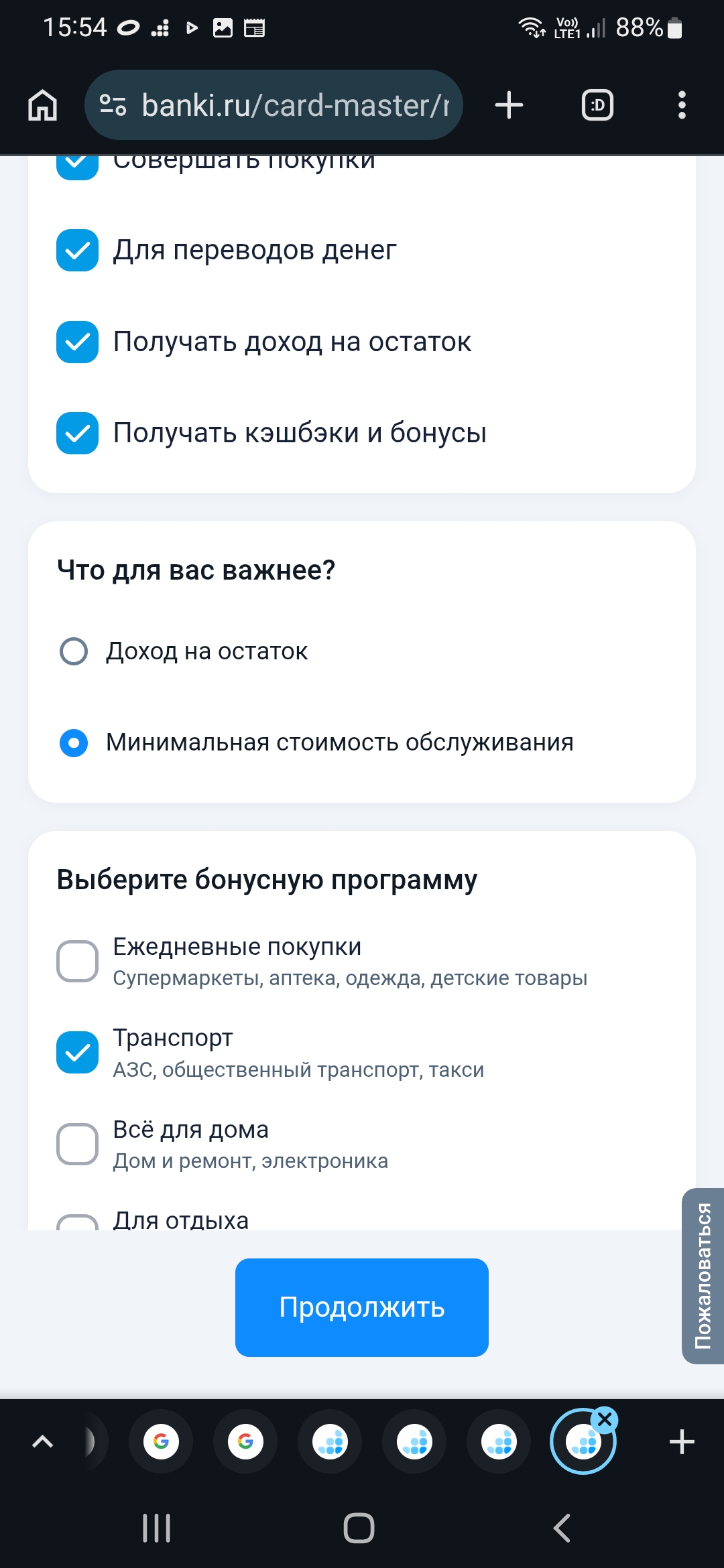 Пролистывая фильтр далее видна возможность отбора карт с приоритетрой для себя бонусной программой.