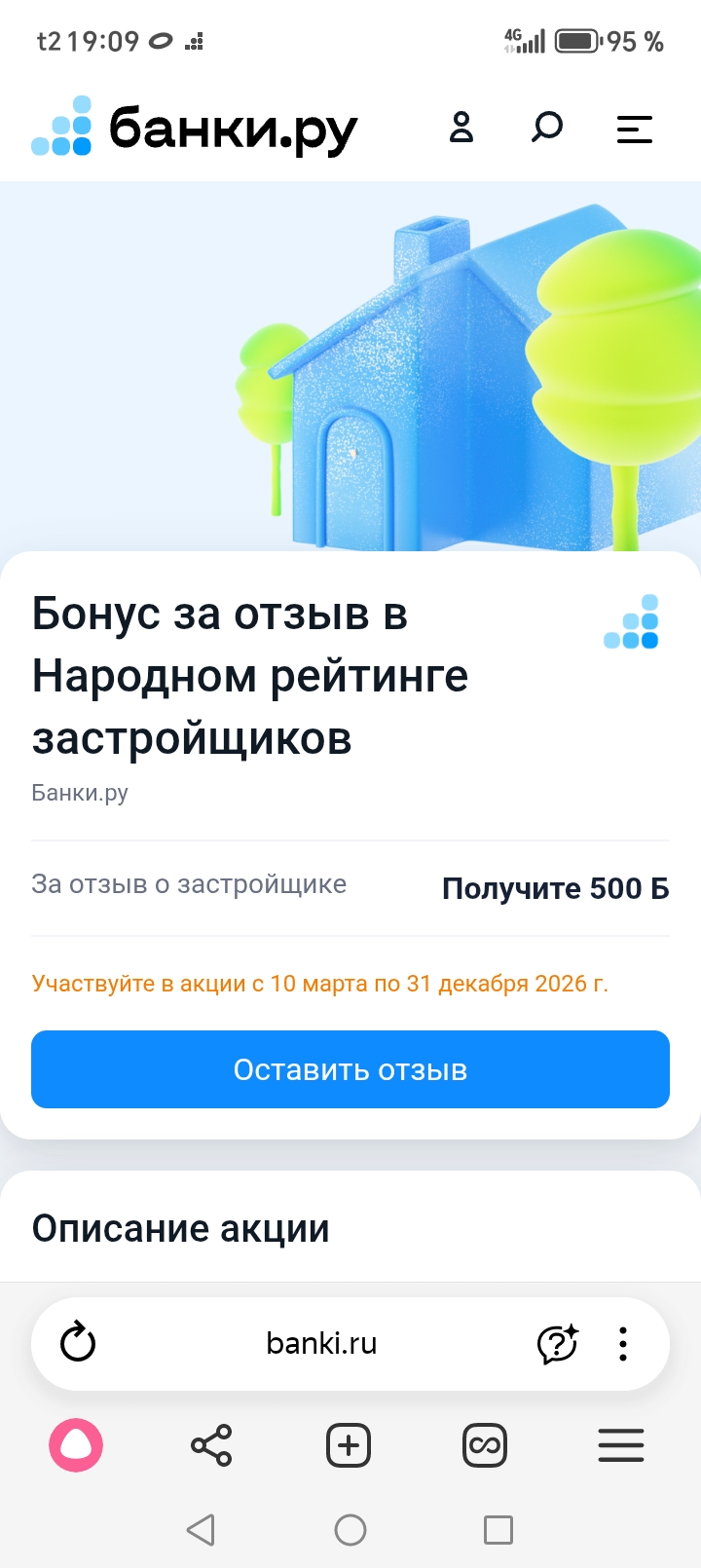 Таким образом Маркетплейс Банки. Ру не только помогает выбрать надёжного застройщика, благодаря Отзывам своих клиентов, но и в случае зачтения Отзыва, начисляет вознаграждение, что является стимулирующим фактором для публикации Отзывов 🧱.