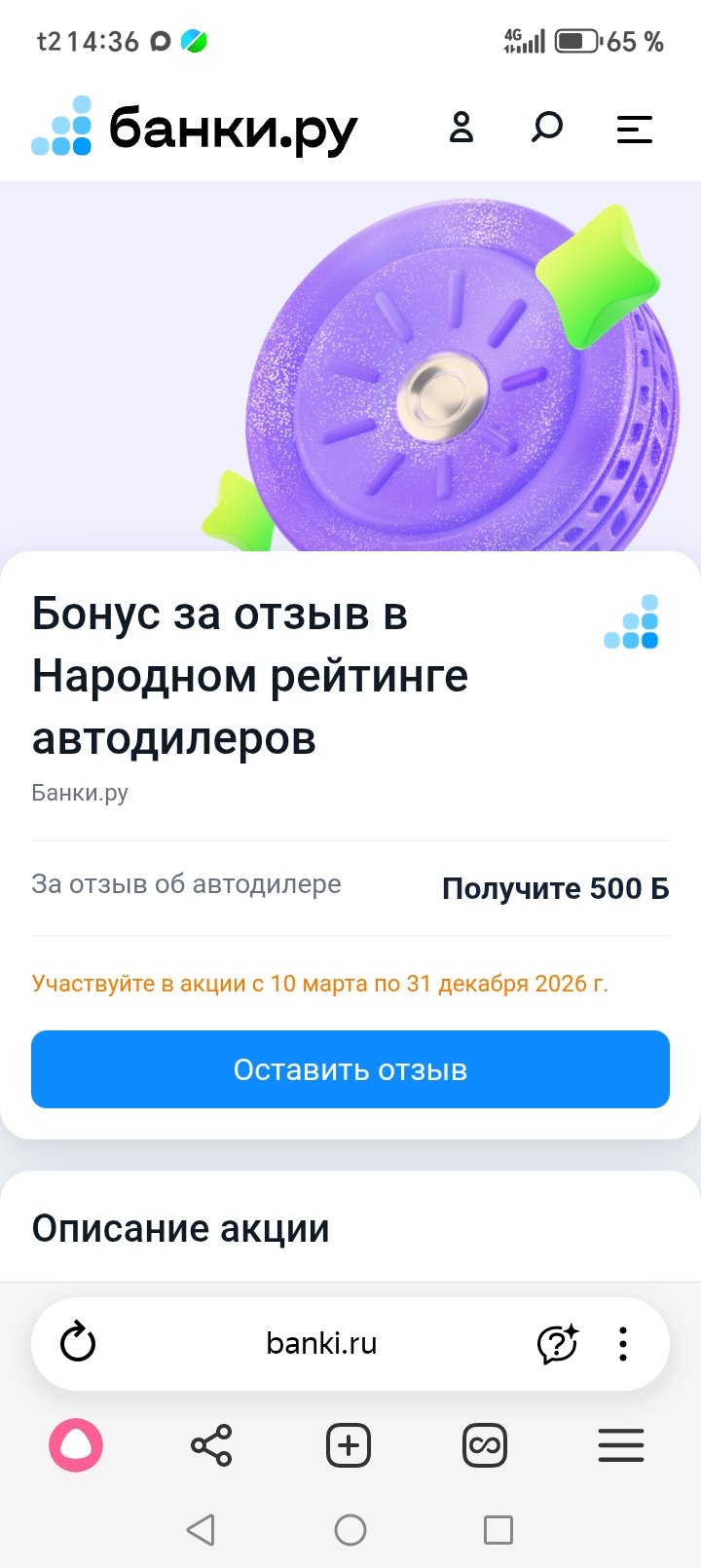 🔻 Оставьте подробный Отзыв в Народном рейтинге Автодилеров и получите 500 Банкимани.