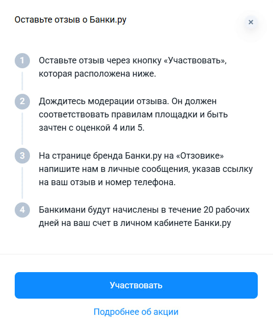 ✴️ Получить Банкимани в течение 20 дней после зачтения Отзыва.