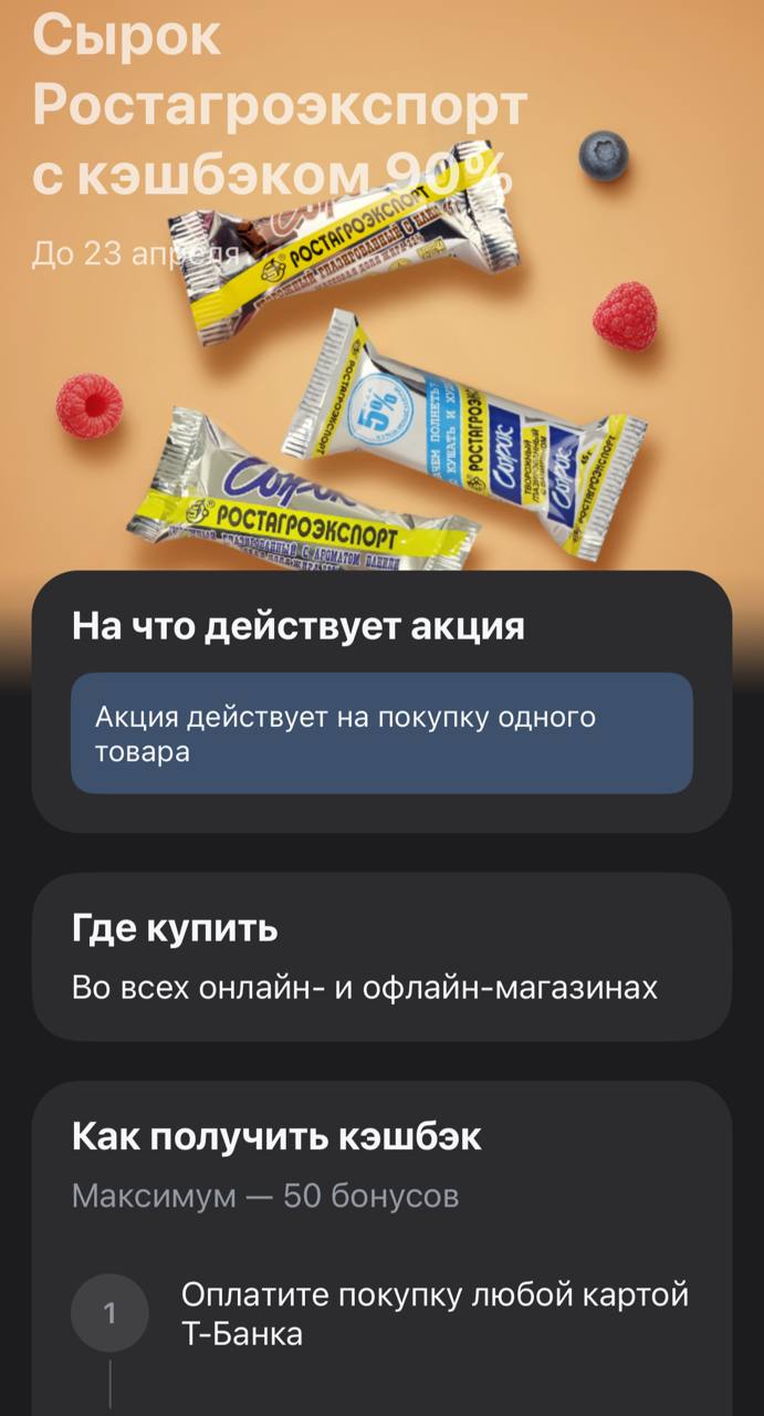 Кажется, Т-Банк решил окончательно захватить наши холодильники. Вслед за бесплатными баночками горошка и премиальными сырками других брендов, в приложении появился новый аттракцион щедрости — кэшбэк 90% на классику нашего детства, сырки «Ростагроэкспорт». Это предложение будет актуально до 23 апреля, так что у вас есть почти неделя, чтобы превратить обычный поход за продуктами в небольшую победу над инфляцией. В отличие от многих других акций, эта не привязана к конкретному сервису доставки, что...
