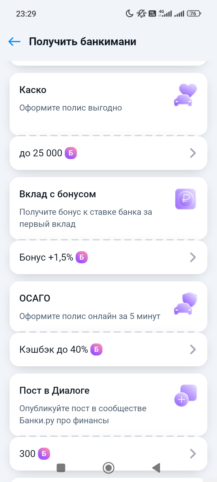 Очень понравилось, что Банки. ру дают ещё крутой бонус при оформлении Осаго, в виде 40% кешбэка, а так же за оформление Каско бонус до 25 000 банкимани, где потом можно их обменять в рубли.